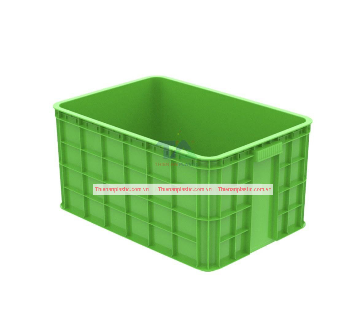 • Thiết Kế: Thành thùng có độ dày đồng đều, gia cường các gân chịu lực ở đáy và xung quanh. Viền miệng thùng cứng cáp, giúp việc xếp chồng an toàn và ổn định, ngăn ngừa hiện tượng lật đổ.