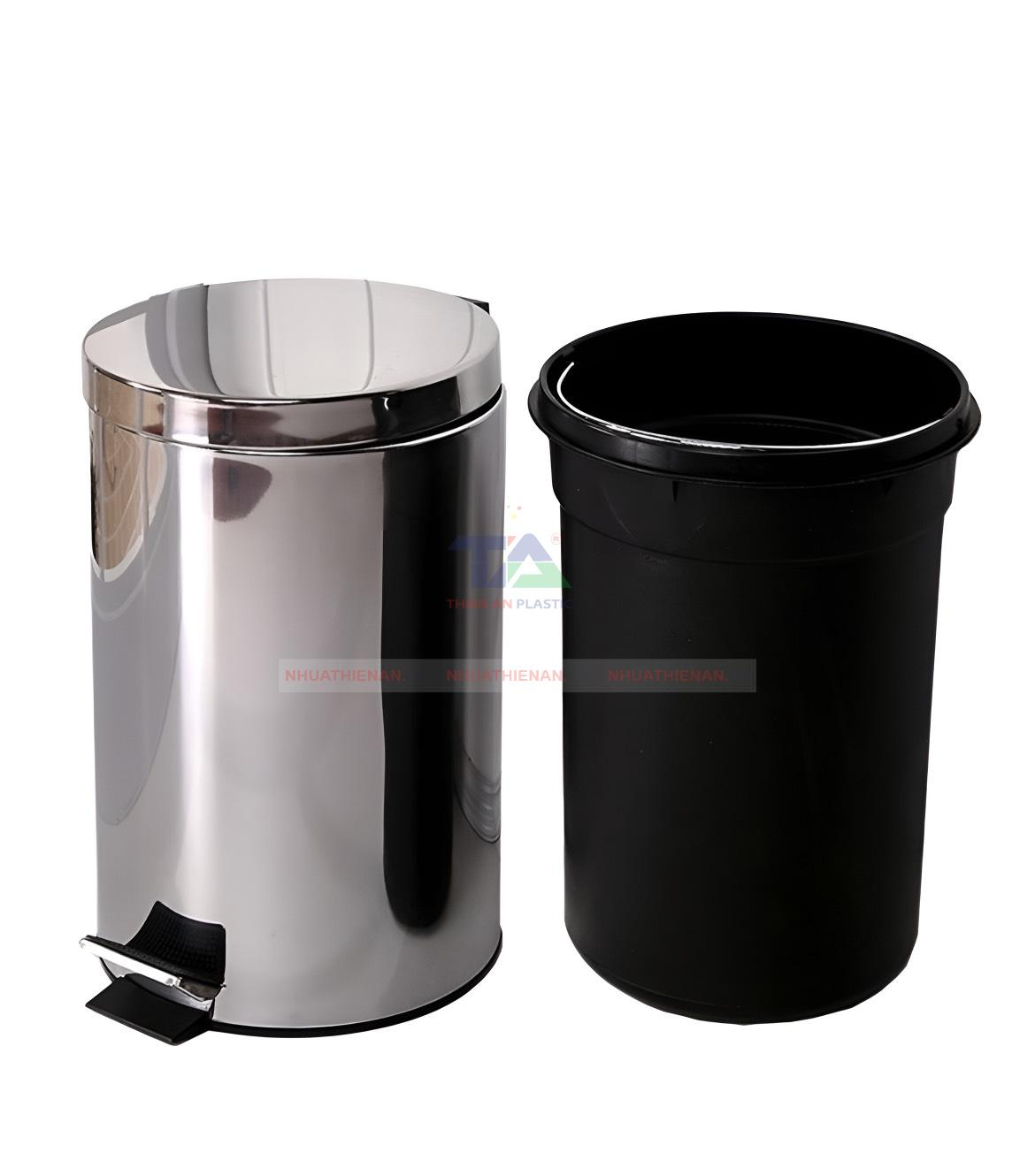 Thùng rác inox đạp chân tròn 12L là một sản phẩm cao cấp thuộc danh mục thùng rác nhựa và đồ dùng inox của Thiên Ân Plastic. Sản phẩm sở hữu những thông số kỹ thuật ấn tượng: đường kính 250mm, chiều cao 395mm, dung tích chứa lên đến 12 lít, được chế tạo từ chất liệu inox 201 cao cấp với màu sắc trắng sáng trang nhã. Điểm nhấn đặc biệt của sản phẩm chính là cơ chế đạp chân để mở nắp, giúp người dùng không cần dùng tay chạm vào thùng rác, đảm bảo vệ sinh tối đa và ngăn ngừa sự lây lan của vi khuẩn. Đây là tính năng vô cùng quan trọng trong bối cảnh mọi người ngày càng quan tâm đến sức khỏe cộng đồng.
