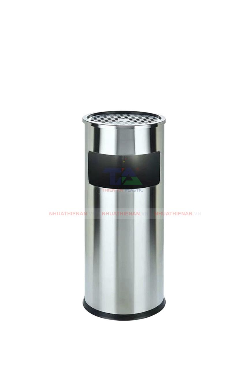 Thùng rác inox gạt tàn tròn là một thiết kế 2 trong 1 độc đáo. Phần trên của thùng được tích hợp một khay gạt tàn thuốc lá chuyên dụng, cho phép người dùng dập tắt và chứa tàn thuốc một cách an toàn, gọn gàng. Phần dưới là thùng chứa rác rộng rãi với nắp đậy kín. Thiết kế tròn, liền khối từ thép không gỉ (inox) mang đến vẻ ngoài sáng bóng, sang trọng và rất dễ lau chùi, vệ sinh. Sản phẩm này giải quyết triệt để vấn đề tàn thuốc bừa bãi – vốn là mối quan tâm về an toàn cháy nổ và vệ sinh chung – đồng thời đảm bảo không gian luôn sạch sẽ, thơm tho.